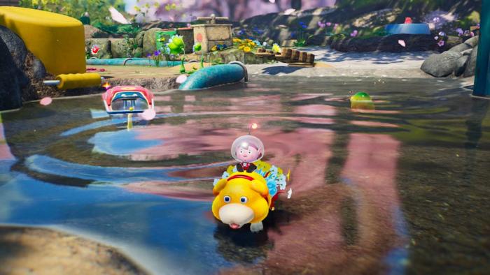 そうすることで、ピクミン 4 には多くのメリットがもたらされます。オーッチは、ピクミンに直接命令したり指示を与えることはできませんが、プレイヤー キャラクターよりもはるかに多用途です。 代わりに、十分なスキル アップグレードを購入すると、障害物を飛び越えたり、水中を泳いだりすることができます。 何よりも、オーッチのチャージ攻撃により、プレイヤー キャラクターではできない大きなダメージを敵に与えることができます。