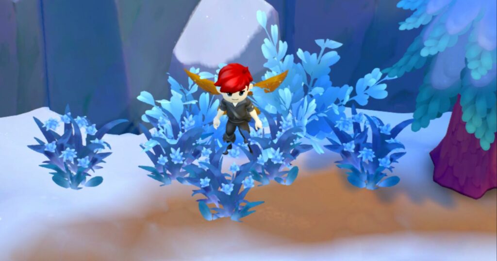 最終的には、グレルという名前の大きな友好的な巨人と遭遇し、吹雪を払うクエストを受けることになります。 この吹雪が原因でフロストアザミが成長しないため、それらを収穫するには「A Frozen Friend」クエストを完了する必要があります。 これにより、次のものが収集されることがわかります。