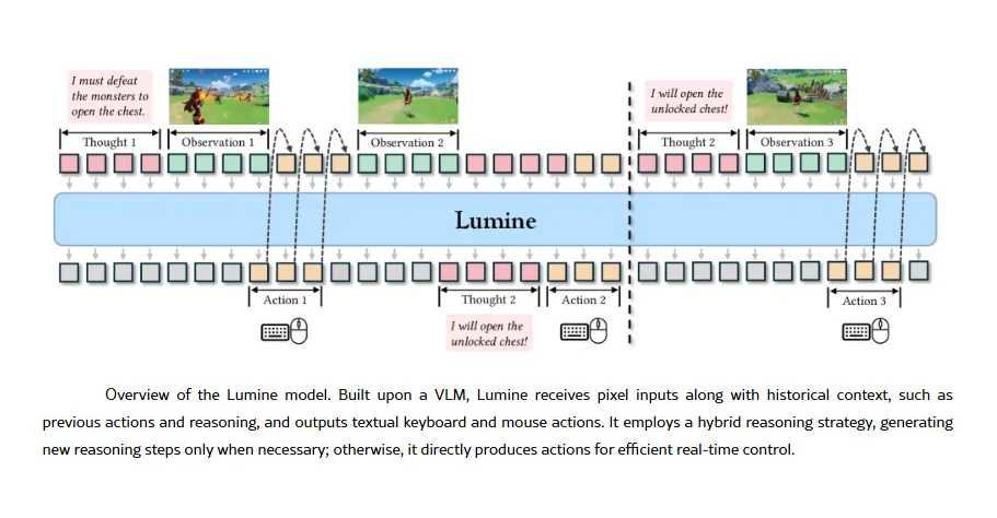 それを特徴づけているのは、その統一された「知覚-理由-行為」パラダイムです。 ただ反応するだけではありません。それは考えます。ルミネは「ハイブリッド思考」戦略を採用しており、行動を実行する前に現在の状況を推論し、次の動きを計画するために内部独白を適応的に生成します。これにより、計画と適応が必要な長期的なタスクを処理できるようになります。