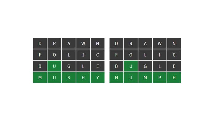 最初の推測がゲームで選択された最初の単語に非常に近い場合は、ゲームを延長するために別の単語に変更されます。 つまり、通常のWordleよりも多くのことを推測していることに気付くことがよくあります。最初から、オレンジと緑のタイルを取得するのは困難です。