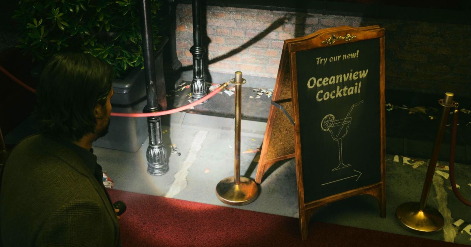 先ほどのサインを思い出し、異常値の価格を見つけると、オーシャンビュー カクテルが目立ちます。 料金は 25.50 ドルで、それがたまたまドアコードでした。 オーシャンビューホテルの正面玄関に戻り、 コード2550を入力してください 中へ入るために。