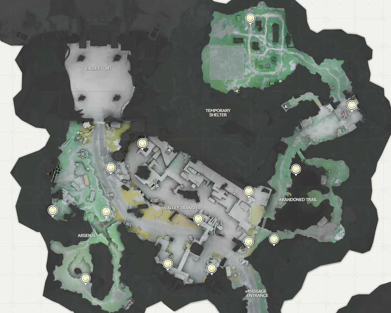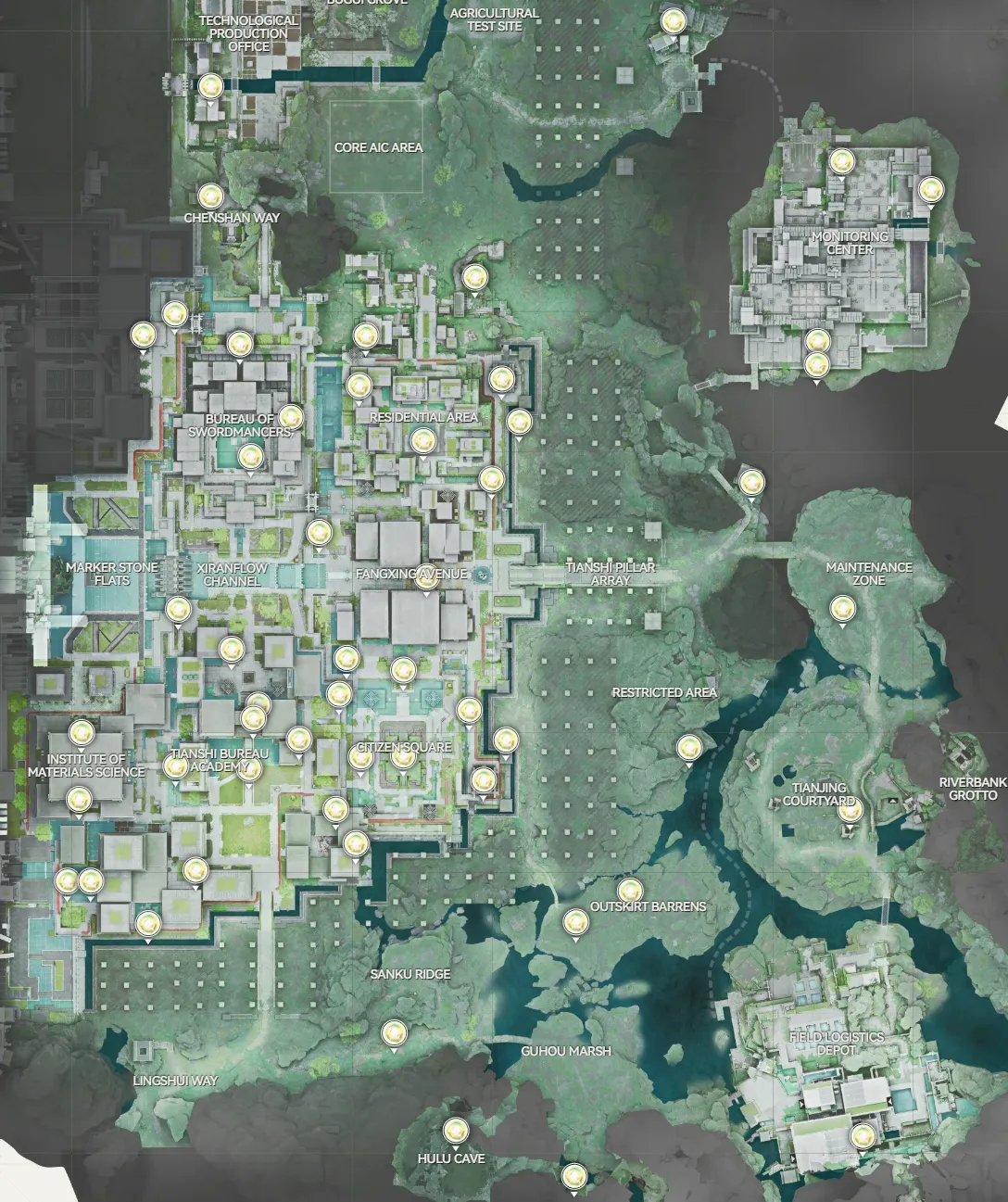 ザ・ハブ → バレーパス → アバリー採石場 → オリジニウムサイエンスパーク → オリジンロードスプリング → パワープラトー → 浄玉渓谷 → 武陵市