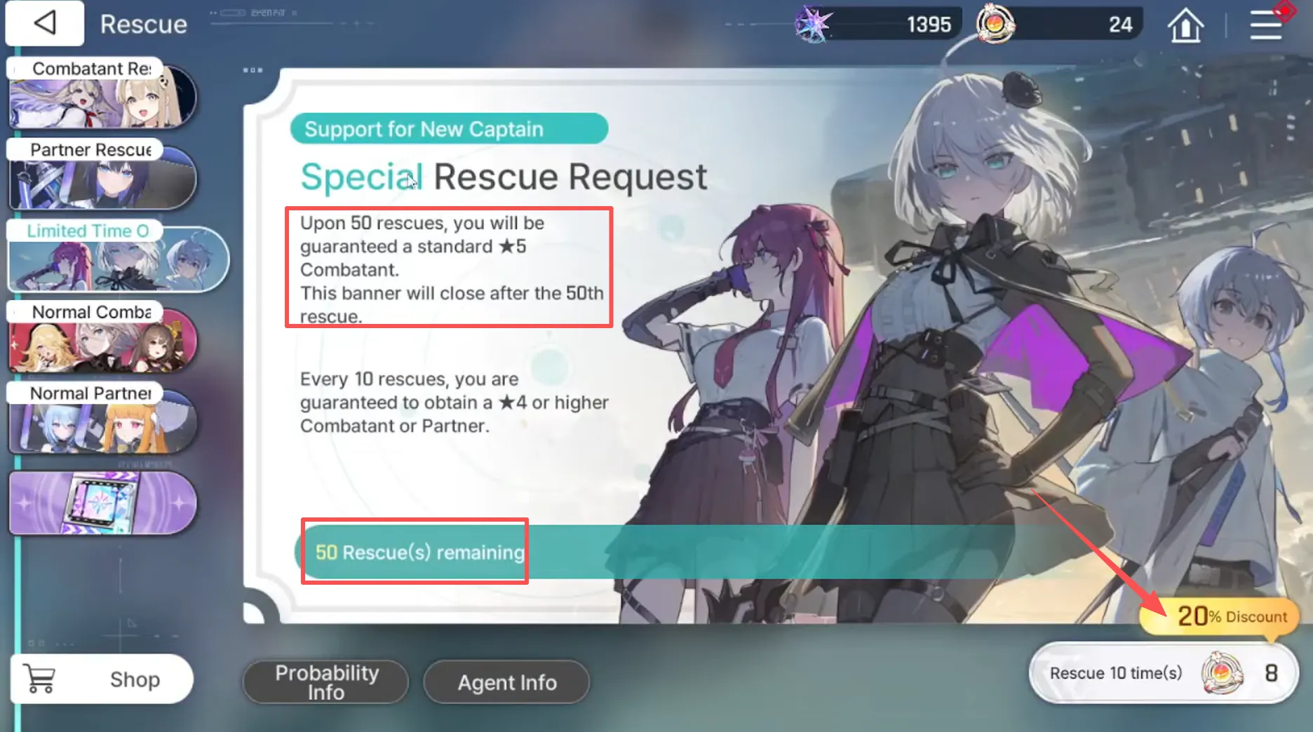 - チケット24枚 のために 初心者バナー(特別救助要請)、に等しい 30回引く (特別救助要請)