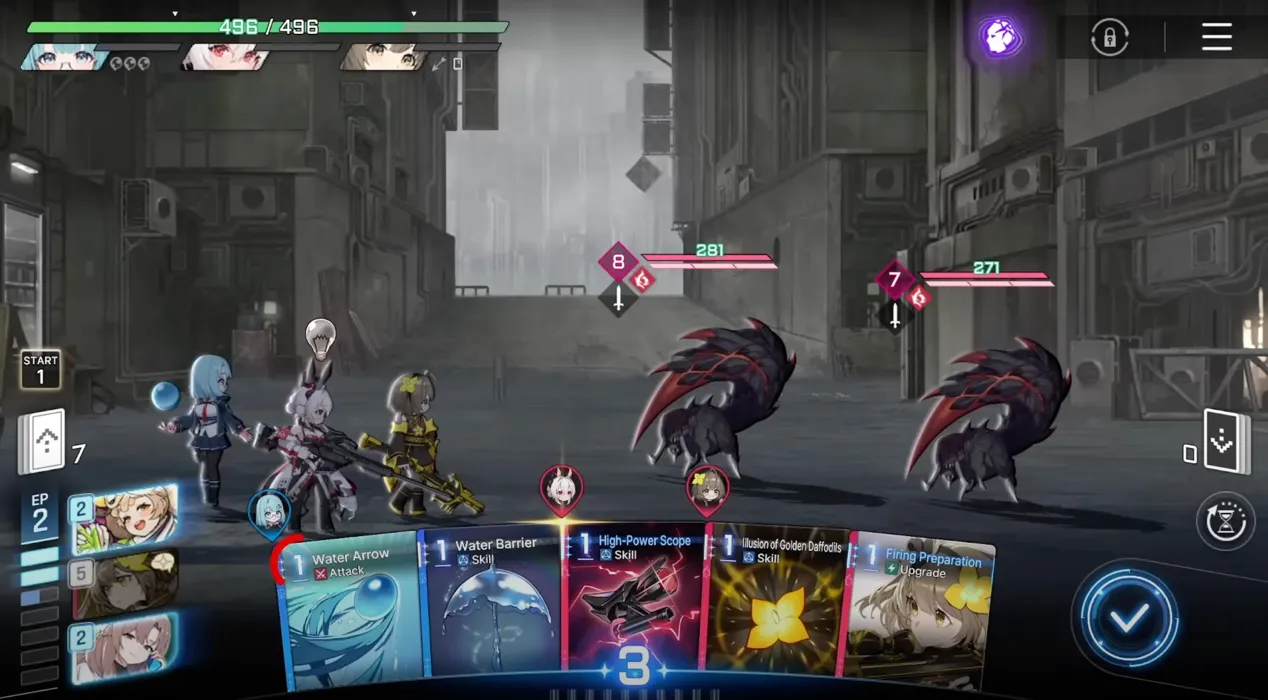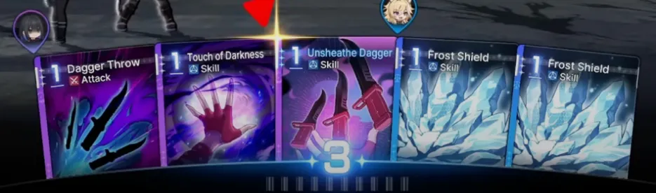 攻撃カード: 直接ダメージを与えます。ターゲットを選択する必要があります。キャラクターの攻撃カードによって倍率、範囲、追加効果が異なります。