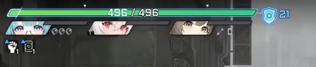 - プレイヤーは 1 つのヘルス バーとシールドを共有する 3 人のキャラクターを配置できます。