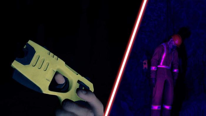 その小さな部屋では、明るい防護服を着た人の死体も見つかります。 それらの横にはボックスがあります。 箱を開けてスタンガンを見つけ、インベントリに追加します。