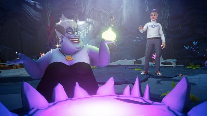 まず、ディズニー ドリームライト バレーで着替える前に、ガイド付きチュートリアルを完了する必要があります。 幸いなことに、これは非常に自明です。不機嫌な魔法使いマーリンに出くわし、とげがはびこる家を紹介してくれます。 それらのとがった雑草を取り除くと、ゲームはさらに開かれます.