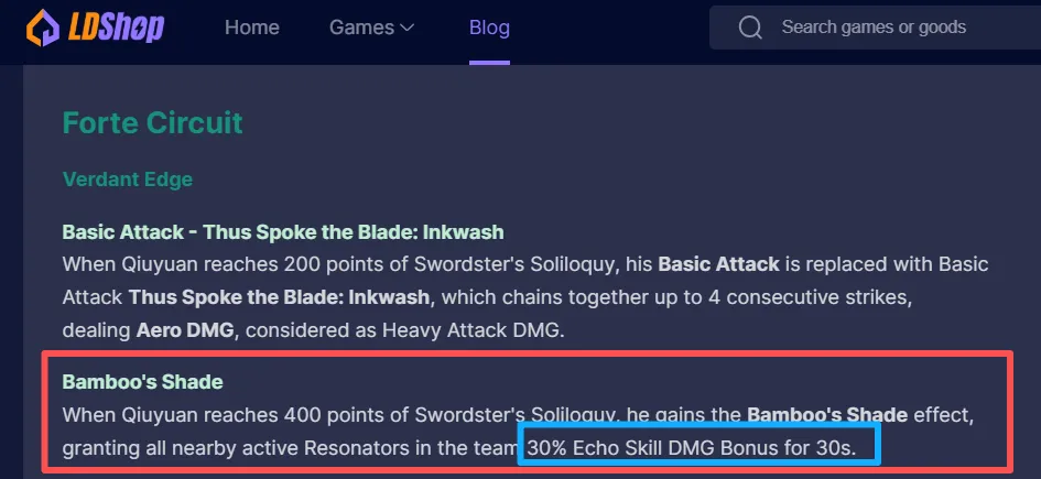 Qiuyuan のバフはより直接的で圧倒的です。彼のコアバフ「Bamboo’s Shade」は、彼のリソースが400ポイントに達するとアクティブになり、すべてのパーティーメンバーに実質的な30%のエコースキルダメージボーナスを与えます。 これにより、ガルブレナの最も重要なダメージソースが完全に増幅されます。 さらに、彼の共鳴解放は、彼自身の CRIT 率に基づいて、チーム全体に最大 30% の CRIT DMG ブーストを提供できます。これら 2 つのバフはダメージ倍率を直接強化します。 その結果、ガルブレナの最終生産量は壊滅的に増加しました。