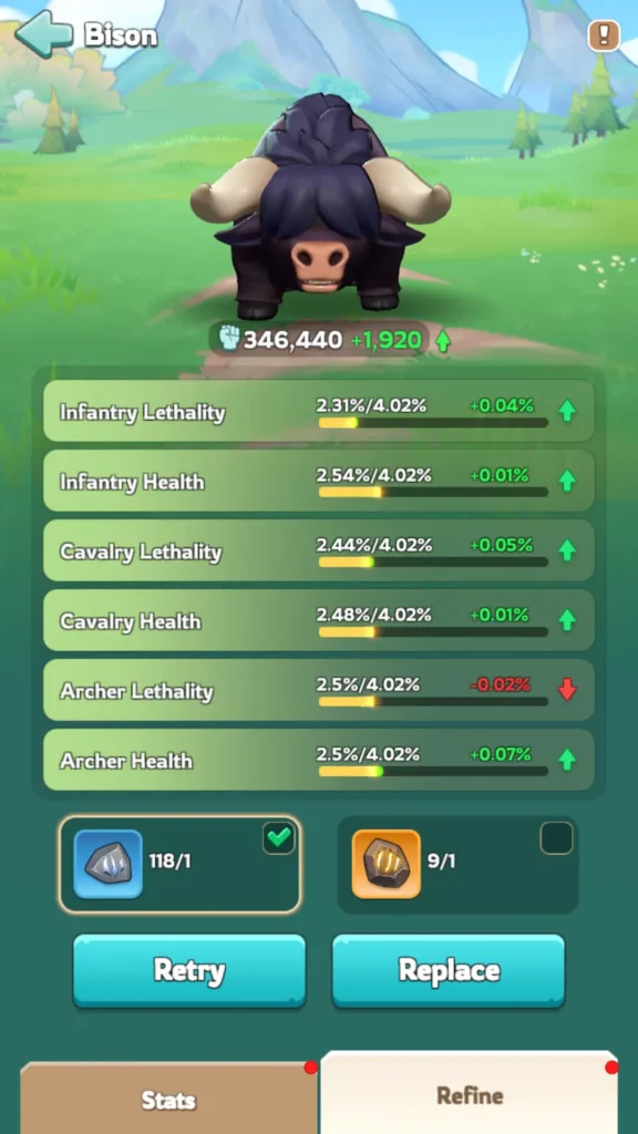 - 珍しいペットのような ジャイアントサイ そして マイティバイソン 精錬によって全体的なステータスが向上します。そのため、それらを持っている場合は、最初に精錬を優先してください。