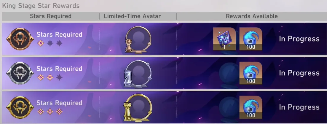 前に 「キング・イン・チェック」 ステージ、あります 3「騎士」 段階。これらの「ナイト」ステージをクリアすると、「キング・イン・チェック」ステージの挑戦難易度が大幅に低下し、必要なチーム投資が E6 レベルから E0 または E2 レベルまで下がります。