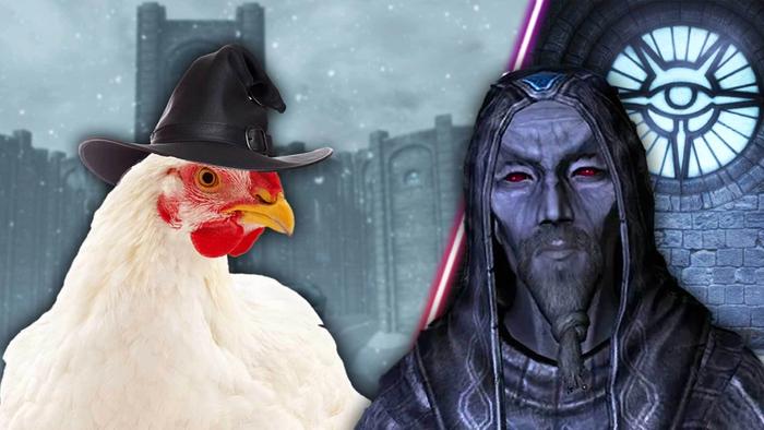 Skyrim の subreddit でのこの奇妙な事件を含むスレッドは、前述のプレイヤーであるユーザー tennerahAndy からの投稿で始まりました。彼は、ウィンターホールド大学への通路でニワトリと一緒にポーズをとっている自分のキャラクターの画像を共有し、次のキャプションを付けました。魔法を学びたい。 あなたが行く、小さな鶏の魔法使い。 夢見ることができれば、それを実現できます。
