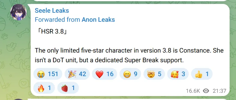 Seele によると、コンスタンスはバージョン 3.8 で唯一の限定 5 つ星キャラクターとしてデビューします。 「常炎の館」の一員で、ゴシック調のエレガントなスタイルの持ち主。