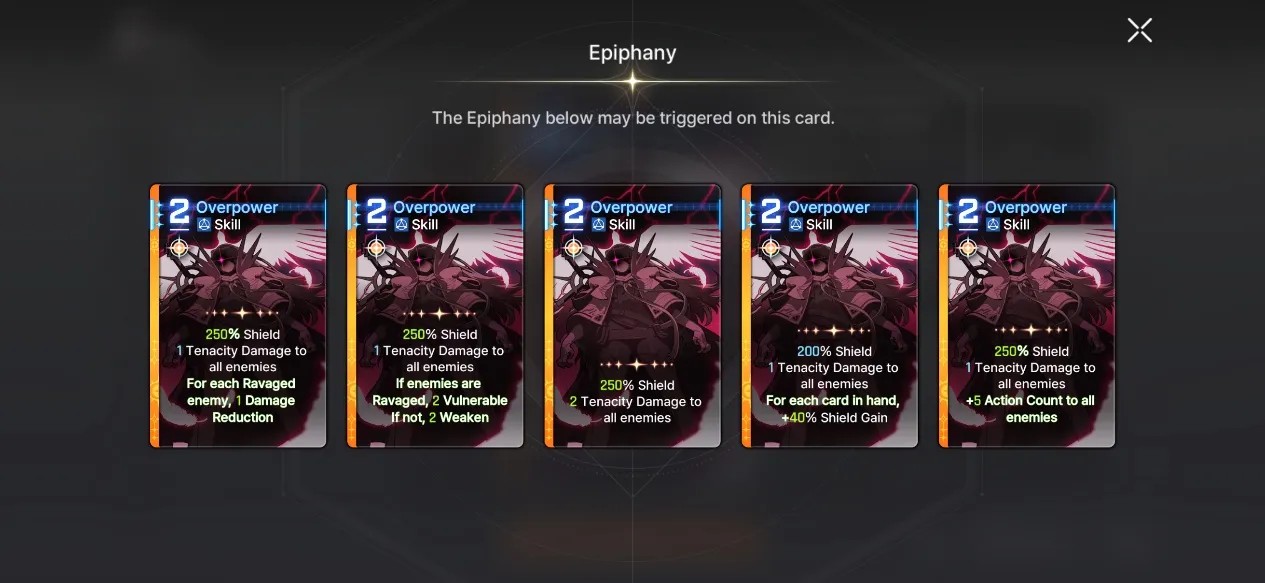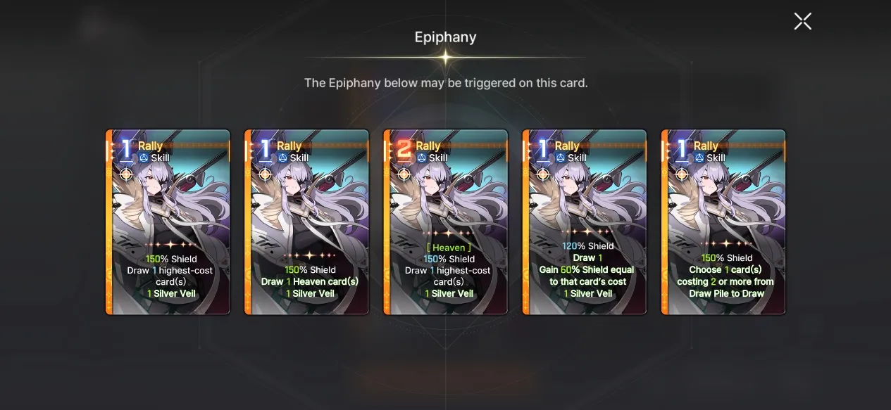 効果: X*100% 防御ベースのシールドを付与し、1 ターンの間手札にあるすべてのカードを保持するを付与します。