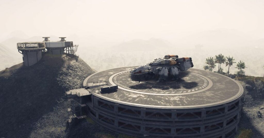 最後に船を着陸させる必要がありますが、そのための場所を見つける必要もあります。 これを行うには、前哨基地の近くに着陸地点が必要です。 ただし、着陸地点とコンテナの間の距離が 250 メートルを超える場合は、アイテムを転送できないことに注意してください。