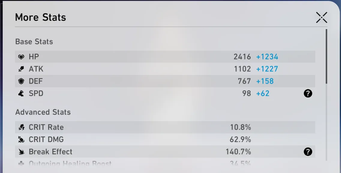 - 彼女の 2 番目のボーナス能力は、ブレイク効果に比例して 50% の攻撃と 20% の外向きの回復ブーストを与えます (最大 200% のブレイク効果)