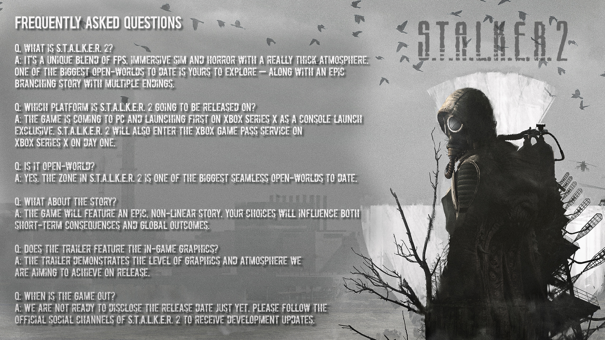 Stalker 2の公式サイトには、「リリース日はまだ公開する準備ができていません」と記載されています。
