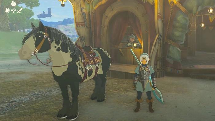 • [騎乗]ボタンを押して、リンクが馬に乗るまで待ちます。