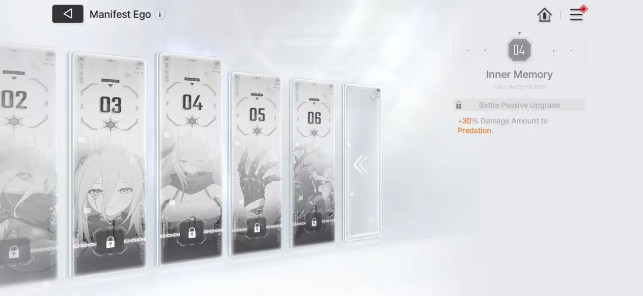 に関して マニフェストⅠナルハはE0で完全に機能し、完成します。さらなる投資を検討している場合は、E4 (捕食ダメージを 30% 増加させる) が最も価値があり、影響力のあるアップグレードです。