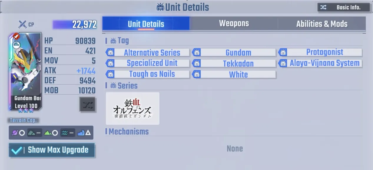 彼の基本近接ステータスは 880 で、ゲーム内でトップの近接パイロットの一人に数えられます。