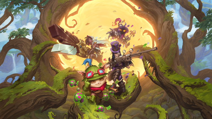 戻ってきたチャンピオンの中には、Teemo、Fizz、Lulu、Heimerdingerなどの新しい戦略を可能にする新しいマルチリージョンカードを入手しているところもあります。 彼らのカードは同じままですが、新しいアートワークと新しい地域としてのバンドルシティがあります。