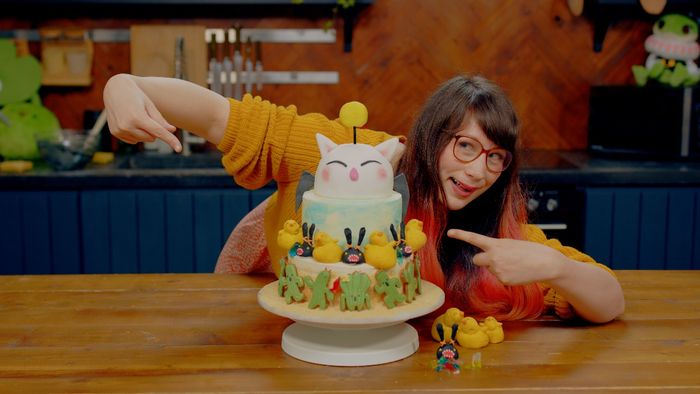 元ブリティッシュベイクオフのスターで料理人のキムジョイは、ファイナルファンタジーXIVオンラインとゲームの遺産を祝う数多くの要素で構成されるケーキをデザインしました。 この多層レモンスポンジケーキには、ゲームに敬意を表して次のようなさまざまな装飾が施されています。