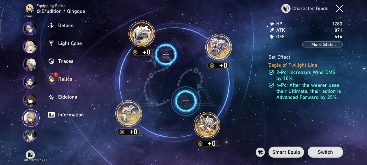 Eagle of Twilight Line は、Ultimate ごとに着用者のアクションを 25% 前進させ、アルジェンティがアクションの順序を上にジャンプさせ、スキル→ Ult をより速くサイクルできるようにします。風ダメージボーナスは無駄になりますが、フリーアクションアドバンスは「アクション値0」のゲームプランに完全に適合します。