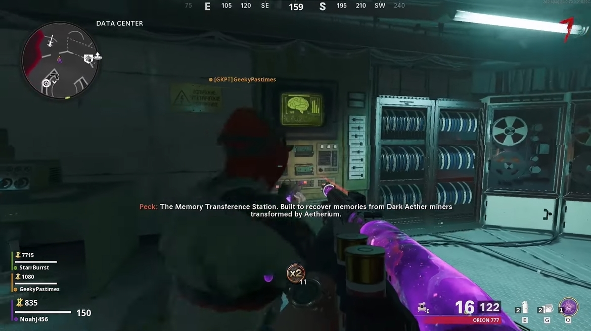 ペックは、最上階にあるデータセンターに向かうように指示します。これは、「メモリ転送ステーション」と呼ばれる脳の写真が描かれた大きなコンピューターユニットです。