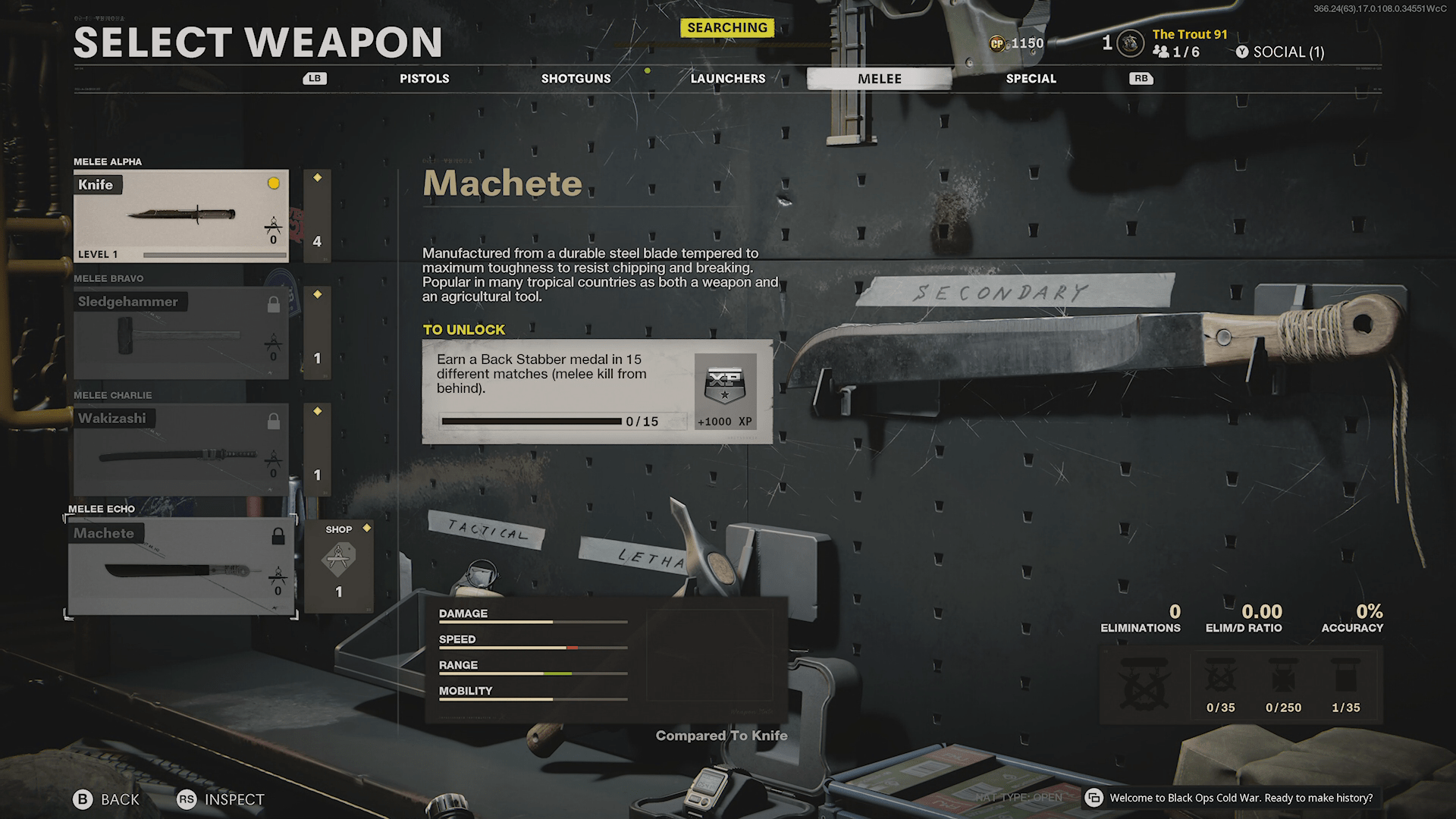 マチェーテインブラックオプスコールドウォーアンドウォーゾーンのロックを解除するには、15の異なる試合でバックスタバーメダルを獲得する必要があります(後ろからの近接キル)。
