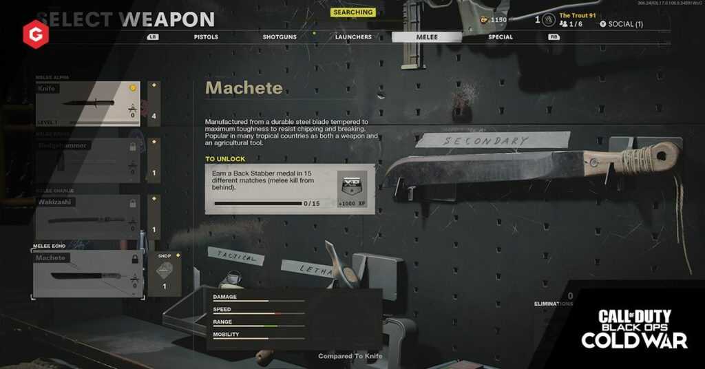 マチェーテインブラックオプスコールドウォーアンドウォーゾーンのロックを解除するには、15の異なる試合でバックスタバーメダルを獲得する必要があります(後ろからの近接キル)。