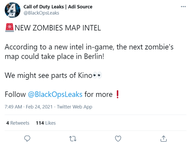 による @BlackOpsLeaks、ゲーム内のIntelは、冷戦の主要な戦場の1つに設定されたマップを指しています。