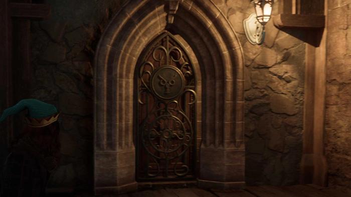フクロウのドアの上の階にゴブレットのドアがあります。 階段を上り続けるとすぐに見えます。 呪文を唱えるのに最適な振り子にアクセスできます。 ドアが開いたら、収集可能なチェストを獲得できます。