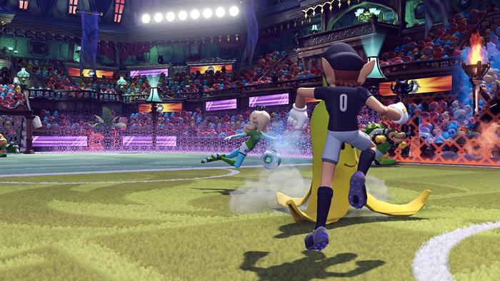 オレンジ色のセクションに着地すると、キャラクターはゴールキーパーに強力なショットを送信します。 高速の発射物から顔を守ろうとする人間とは異なり、ネットの前にいるマリオストライカーのキャラクターはセーブを試みます。 しかし、運が良ければ、それはうまくいき、2つの追加の目標を与えます。