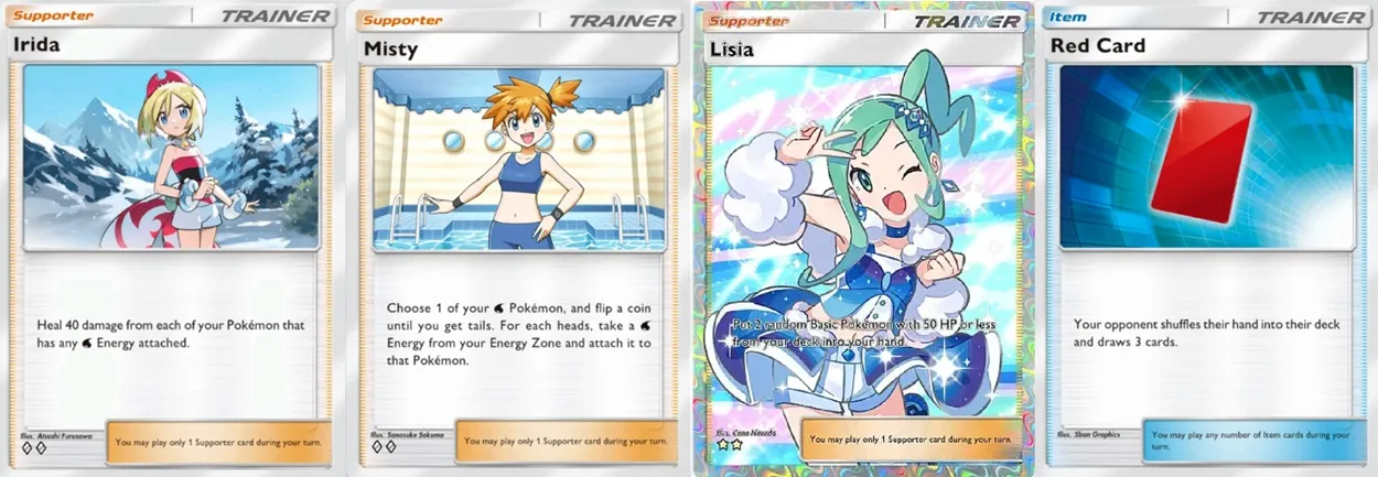 - ミロティック:「ダメージを広げる」ベースのデッキ(Greninja や Starmie ビルドなど)に直面している場合、Milotic の 60 HP の回復は Irida の 40 HP よりも優れており、瀕死のギャラドスを瀬戸際から救うことができることを意味します。