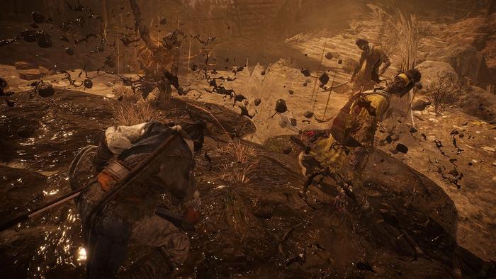 標準的な受け流しは、スピリットとして知られるスタミナ バーを増加させますが、ブロックできない攻撃を受け流すと、それらは反撃の余地が残され、スタミナ バーが枯渇します。 彼らのバーを完全に消耗させることができた場合、彼らは大きなダメージを与える 1 回の巨大な攻撃を受けることができます。 スピリット アタック、ウォ ロングの強攻撃は、最大のスピリット バーにダメージを与えるため、プレイする余地が少なくなります。 これらすべてが組み合わさって、戦闘は絶えず変化するサイクルになります。