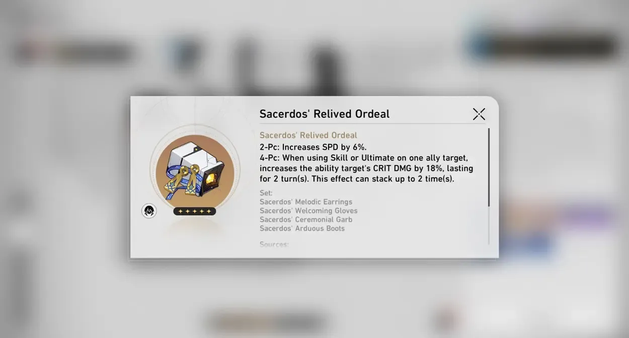 ボーナス: 3 ターンの間、クリティカル率 +20% (最大トレース時) を付与します。これは、5つ星のクリティカル率のボディピースとほぼ同等です!