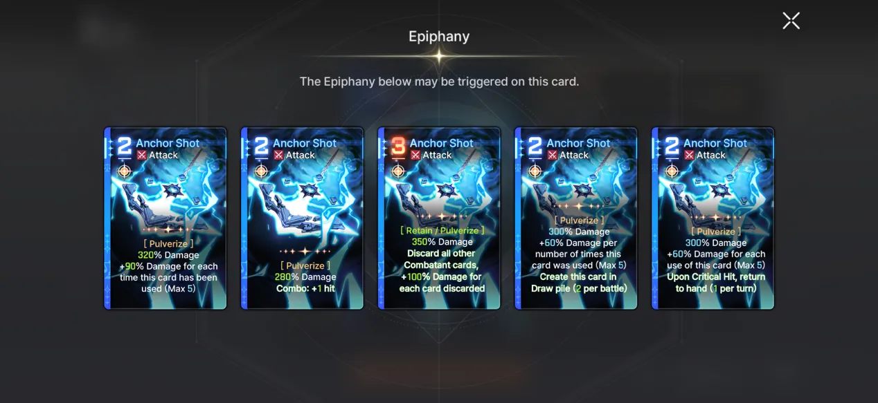 エピファニー 2 (保持): 次のターンに再度使用することができ、アンカーショットの迅速なスタックが可能になります。
