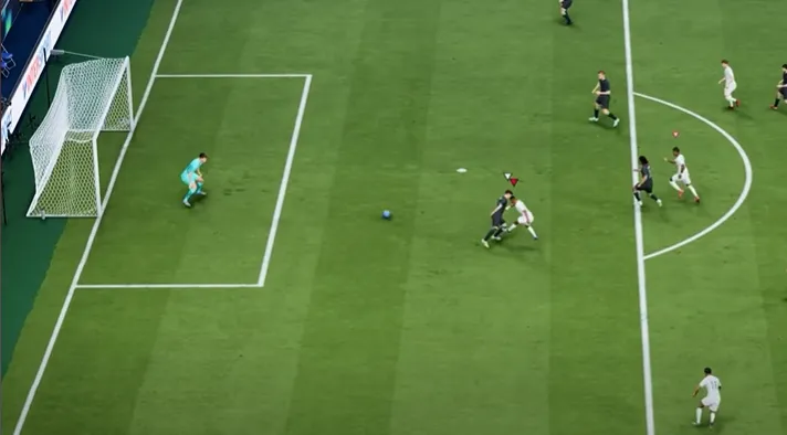 – 相手のゴールキーパーとの 1 対 1: これはロー ドライブ ショットを行うのに理想的な状況です。一般的にゴールキーパーはロー シュートに対処するのが非常に難しいため、より簡単にゴールを決めることができます。この状況では中断がほとんど、またはまったく発生しないため、このテクニックを使用する絶好の機会となります。