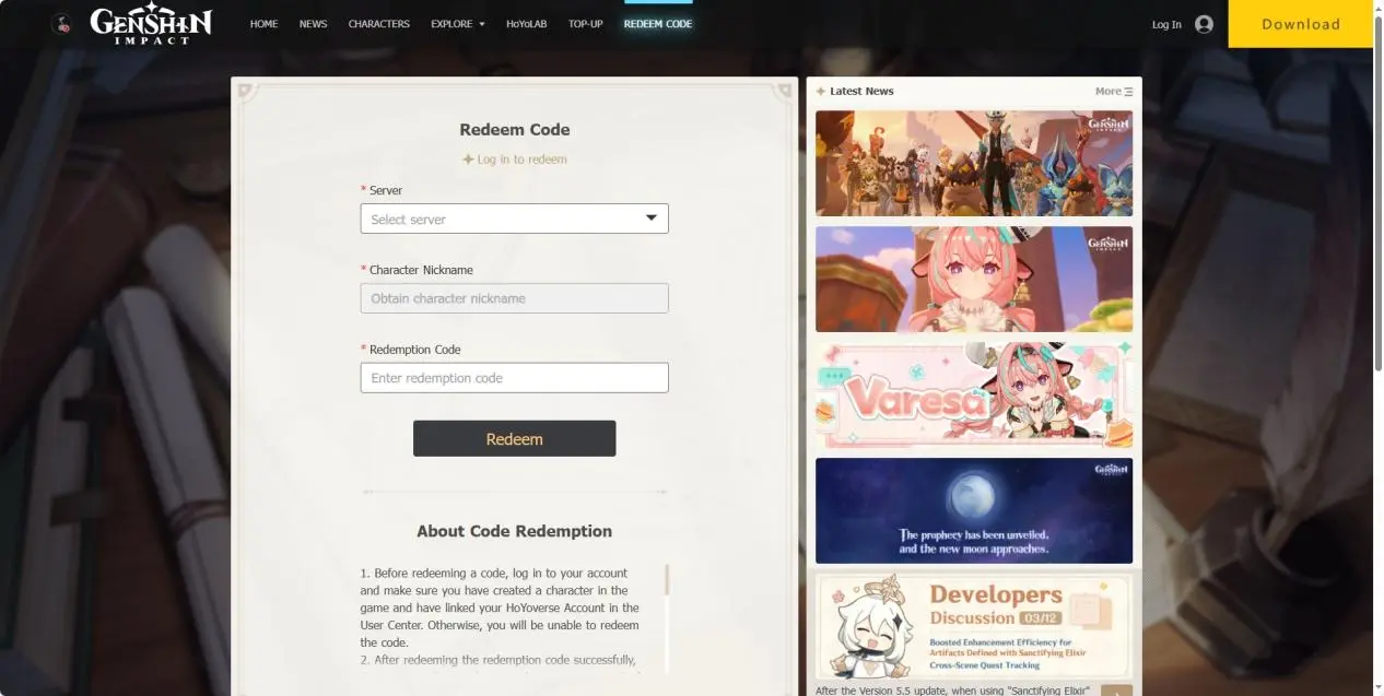 コードの引き換えは簡単ですが、アドベンチャー ランクが 10 以上である必要があります。引き換えコードを使用できます。 HoYverse公式ウェブサイトで または ゲーム内で引き換え可能。両方の方法の手順を次に示します。