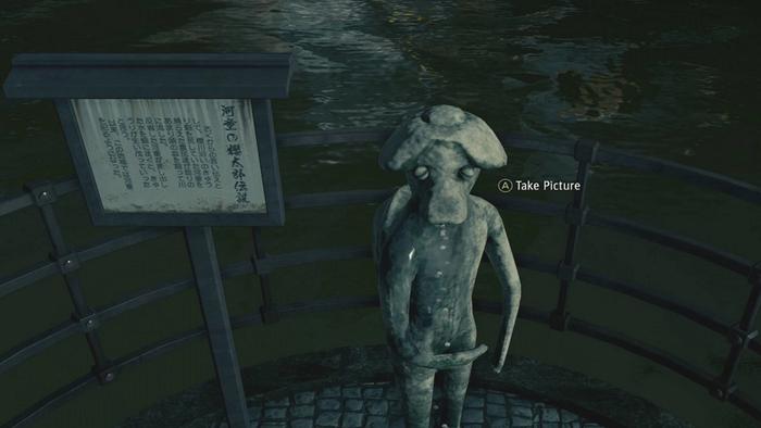 ある手がかりは「最近カッパの目撃情報が増えた」と言って卑劣だと言っていますが、卑劣なビットはRGGがこれを追加した方法です。それはヤクザの像と同じ場所にあります:ドラゴンのカッパ像のように、南の最南端にありますさくらリバーストリート。