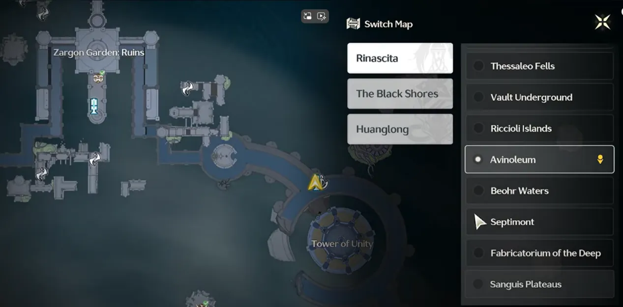 アビノリウムの統一タワーにある共鳴ネクサスの場所
