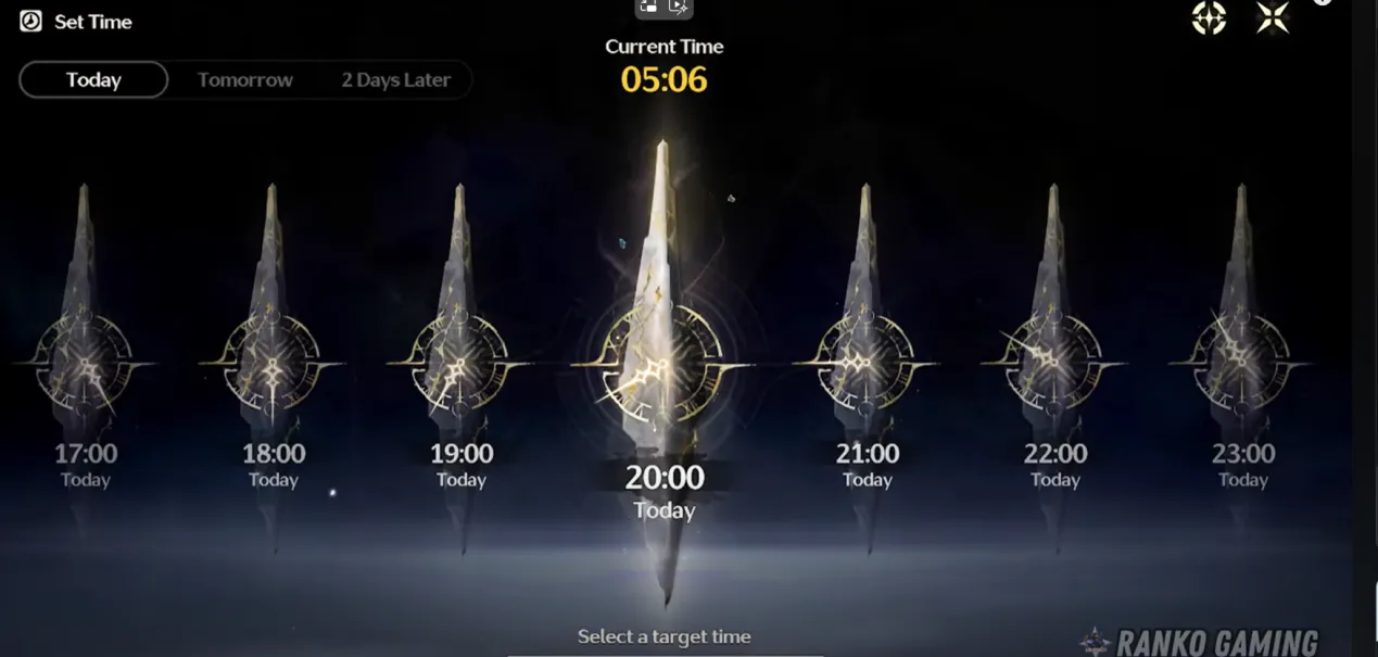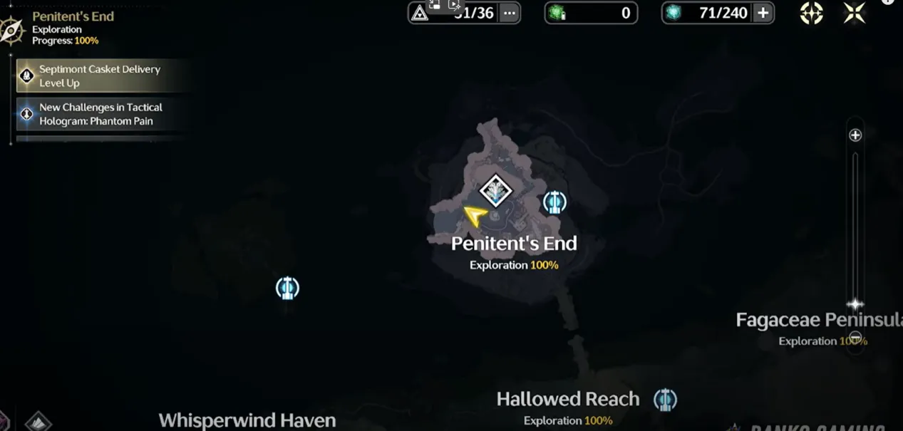 へのファストトラベル ペニテントズ・エンドの「フールズ・パラダイス」の隣にある新しいレゾナンス・ネクサス。左折して東に飛行してステージに向かい、時刻を午後 3 時に調整します。