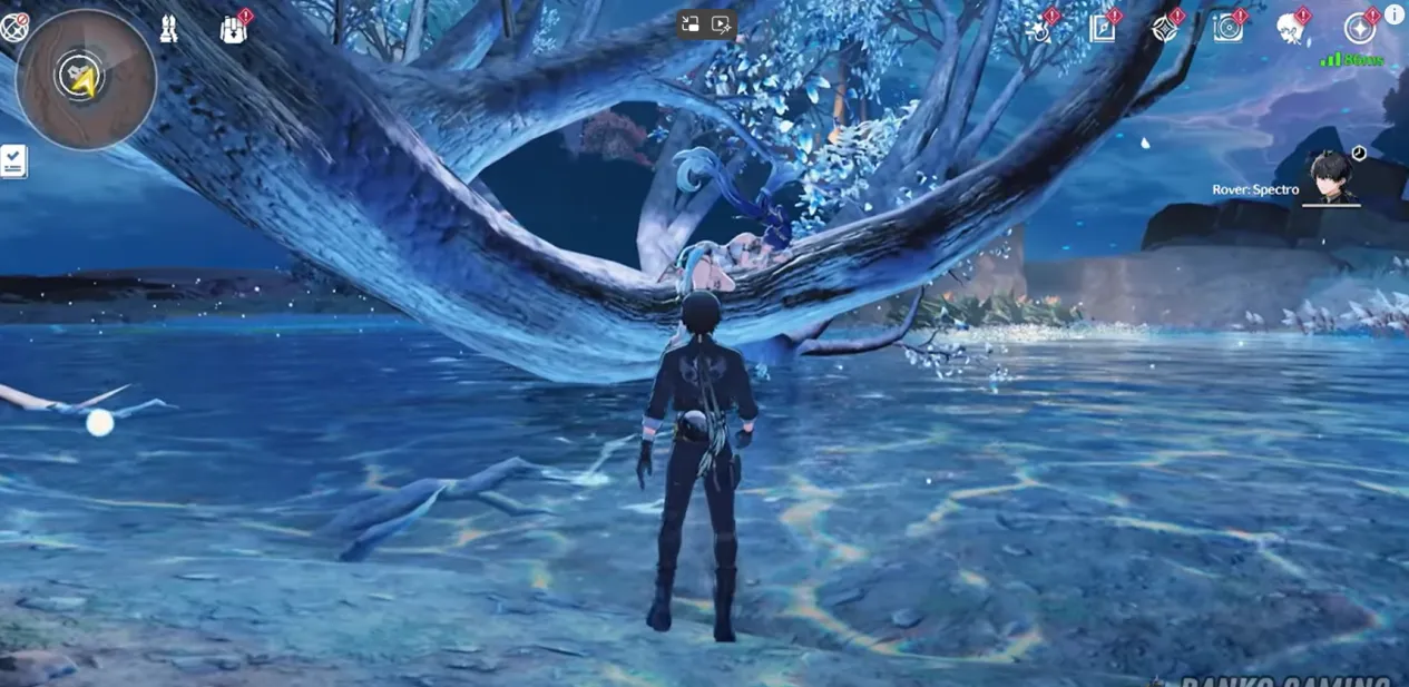 マップを開いてサンギス高原に切り替え、マップを少し左に引いて「アスフォデル・不毛地帯」の上にある共鳴ネクサスにファストトラベルします。到着後、向きを変えて地図上を南西に山に向かって飛行します。光る木に着いたら、時間を午後 8 時に調整してください。木の上にはイウノがいます。イウノに話しかけると実績が得られます。