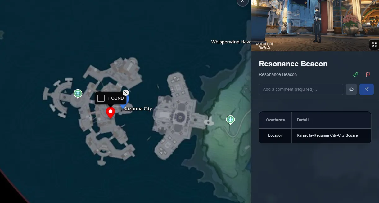 ラグナシティの噴水にあるレゾナンス・ネクサスの場所