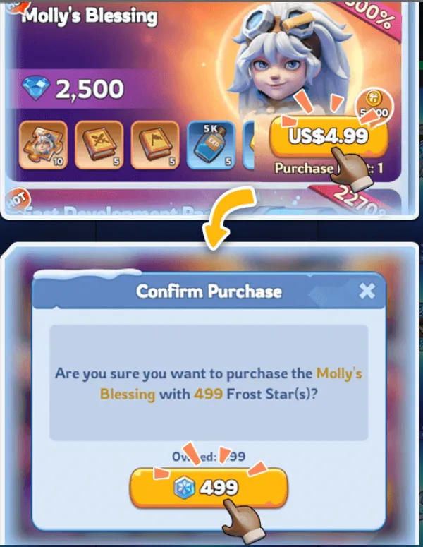 • フロストスターが十分にある場合は、 デフォルトの支払い方法 関連するパックを購入するため。