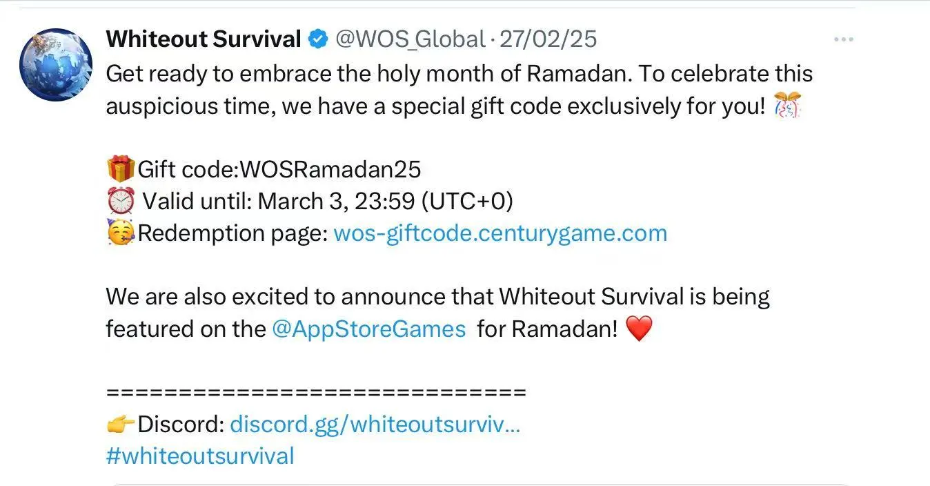 *すべてうまくいくはずなのにボーナスを受け取れない場合は、Whiteout Survival サポートにお問い合わせください。