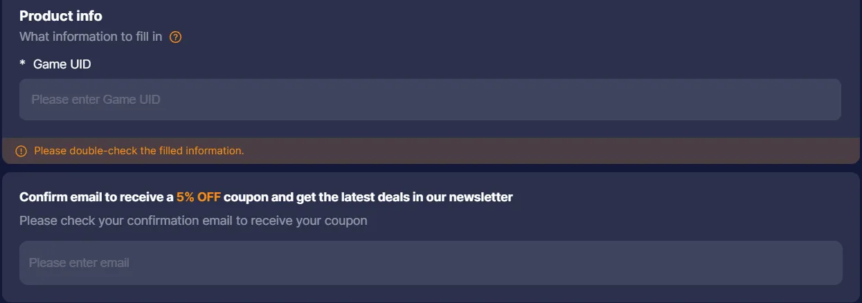 UID を入力するだけです 安全かつ迅速に アカウントに補充してください。信頼できるサービスを提供することで、ユーザーの安全を確保します。 スムーズな充電体験