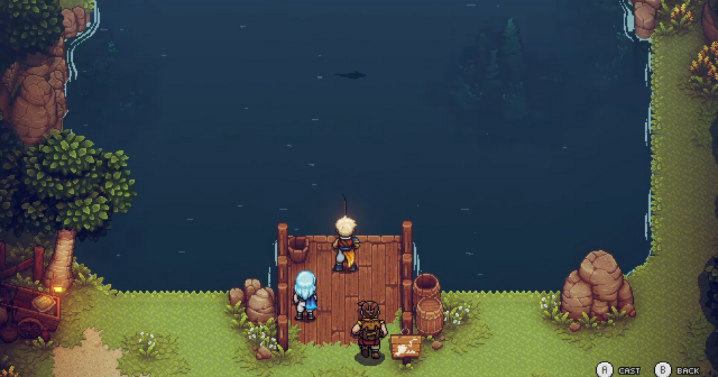 Sea of Stars では、冒険のかなり早い段階から釣りを始めることができます。 ゼニスアカデミーでの訓練を終え、禁断の洞窟を無事に突破したら、必ずサングロウ湖に向かいましょう。 マップの西側に位置し、ゲーム内で最初に出会う釣り場です。