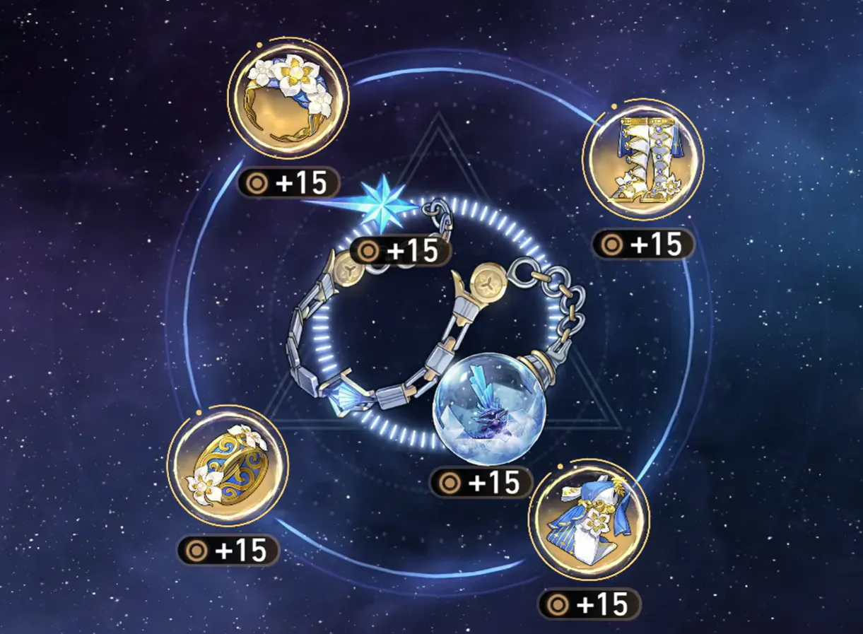 このビルドでは、 哀悼の詩人 崩壊 基本的には必須です。ゲパルド自身のクリティカル率はほぼゼロであり、チームメイトからの適切なクリティカルバフをすべて加えた後でも、まだ約 30% のクリティカルギャップがあり、きれいな方法で埋めることはできません。 4 ピースの詩人セットはそれを完璧に修正します。彼のスピードがしきい値を下回っている限り、彼は大幅なフラットクリティカルブーストを獲得します。ワンショットビルドでクリティカルを空振りさせるのは致命的であるため、これにより彼のシングルヒット核カウンターの信頼性がはるかに高まります。