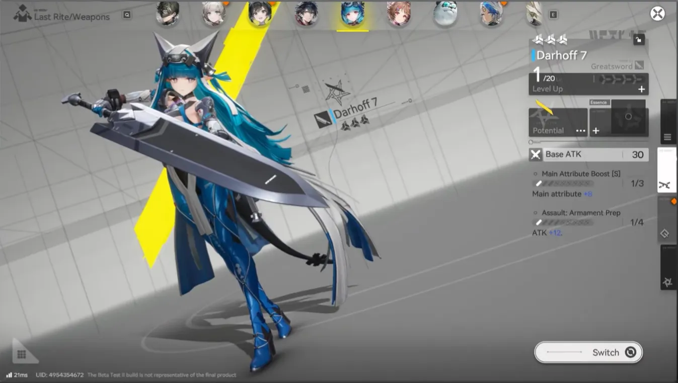 ゲームは正式にリリースされていないため、彼女のスロット内で最適なギアはまだ決定されていません。コアとなるギアの原則は明確です。Cryo DMG、ATK、CRIT Rate/CRIT DMG、または SP Recovery Efficiency を増加させるステータスを優先します。彼女の核となるダメージ処理能力を強化する装備は、第一の選択です。