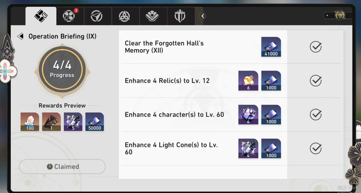 - 忘れられたホール (混沌の記憶): チャレンジステージをクリアすると報酬を獲得できます。